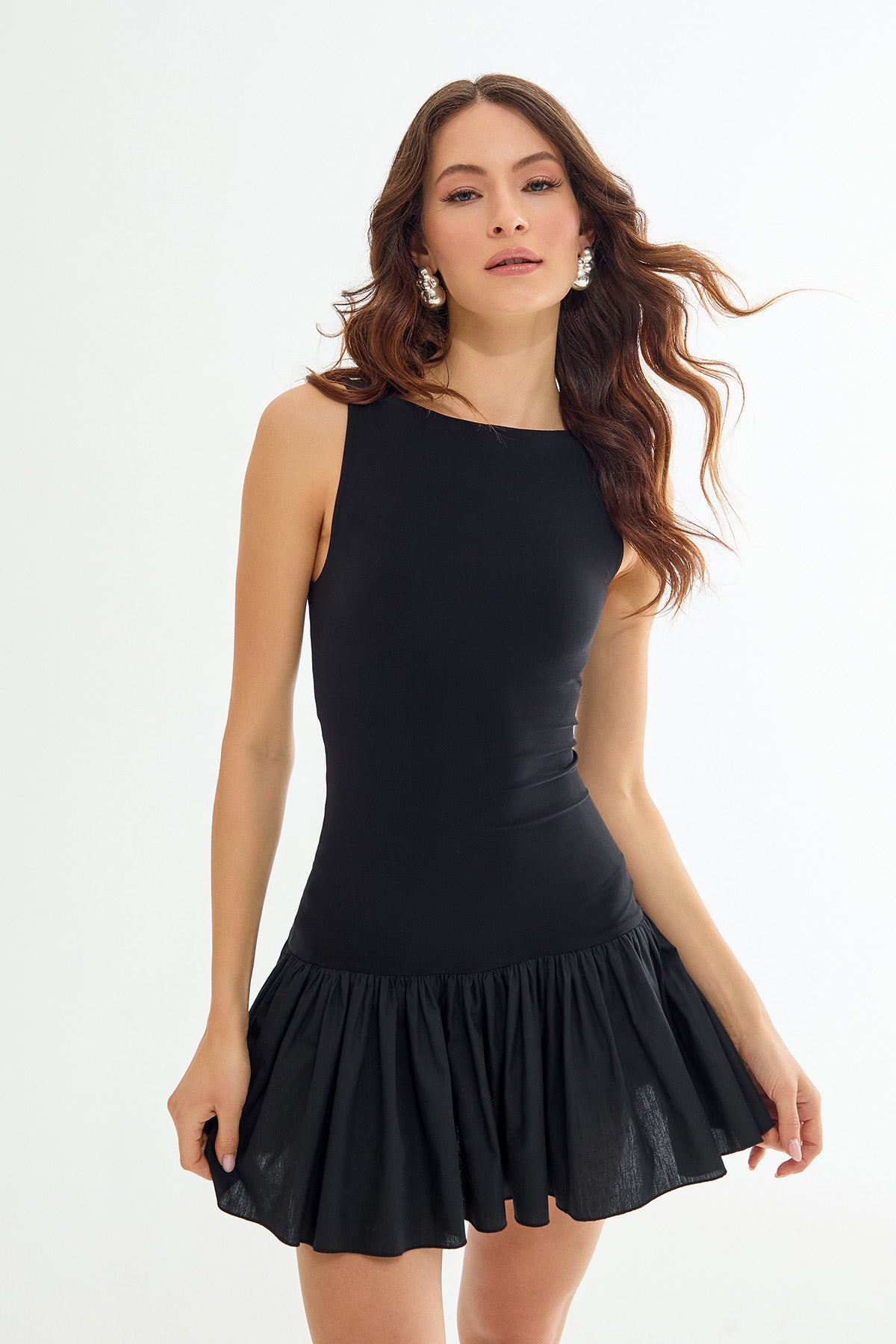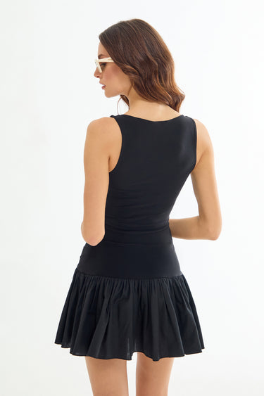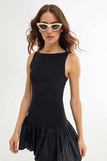 CARMELLA Poplin Detaylı Mini Siyah Elbise