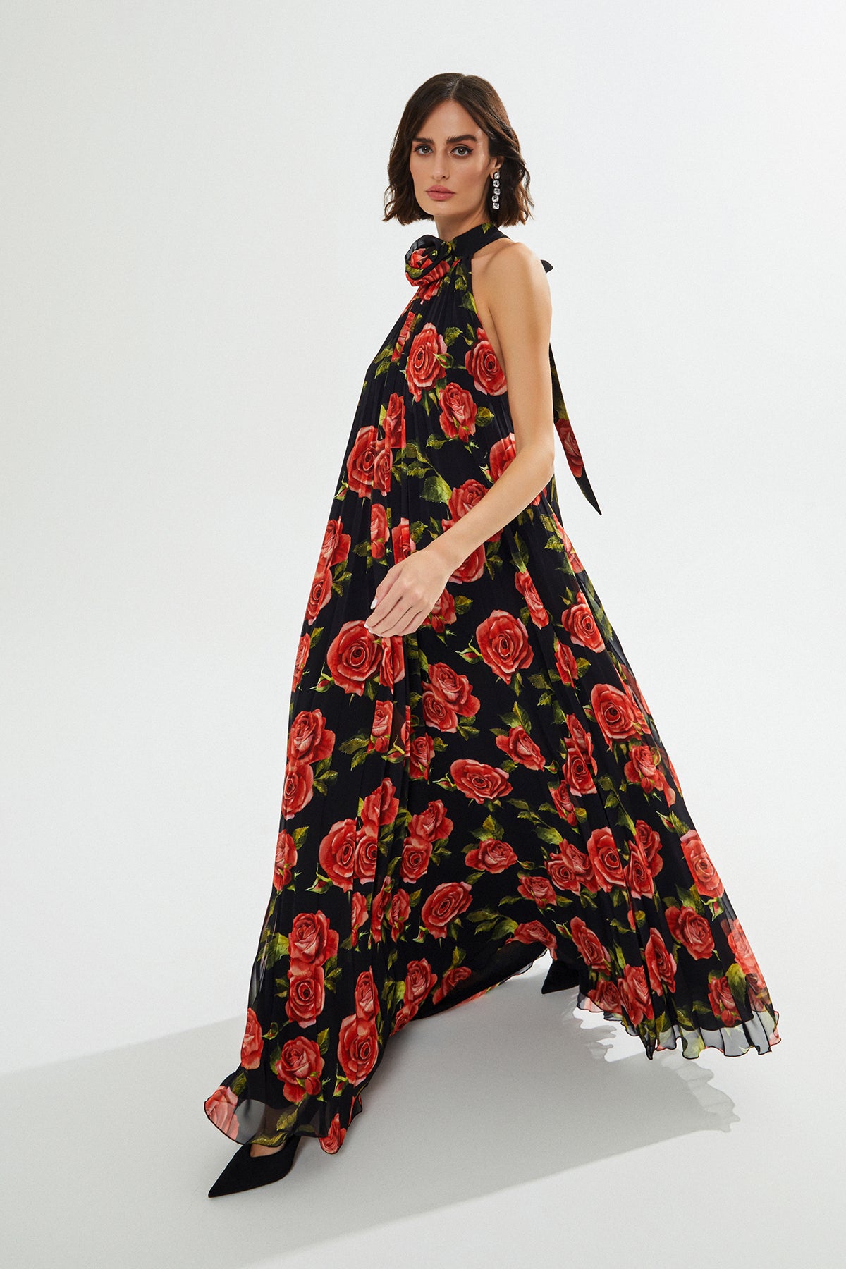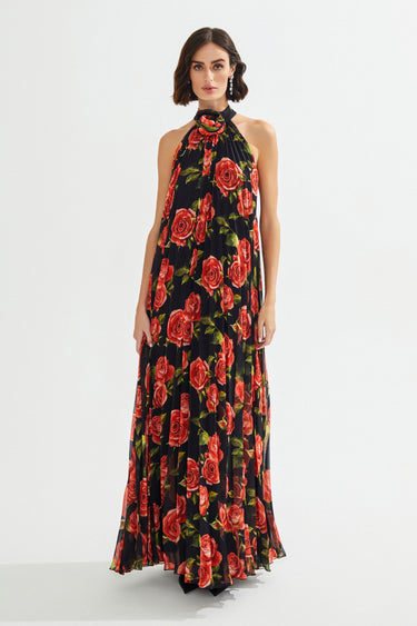 JOVIE Çiçek Baskılı Pileli Uzun Elbise