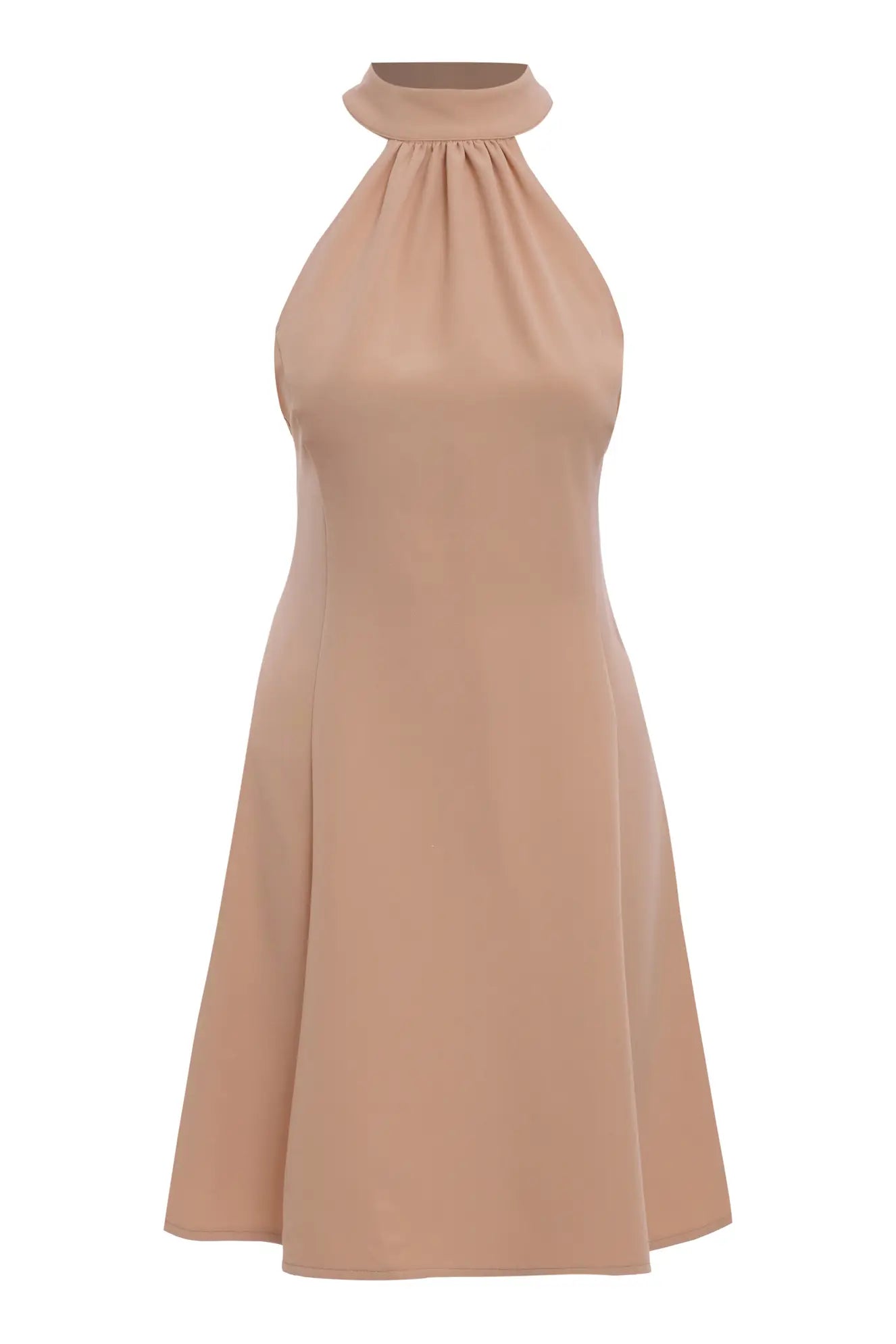 Beige Crepe Sleeveless Mini Dress